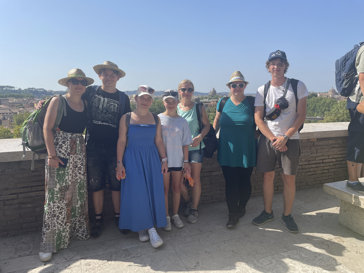 Am Nachmittag brechen wir noch einmal in die Stadt auf und erklimmen den Aventin. Von dort haben wir einen wundervollen Blick über die Stadt und schauen auch durch das Schlüsselloch auf dem Piazza dei Cavalieri di Malta. In der Kirche Santa Sabina halten wir Andacht und legen die aus unseren Heimatgemeinden mitgebrachten Fürbitten vor Gott. Ein Eis und eine kleine Runde durch die abendliche Stadt beenden unseren letzten Tag in Rom.